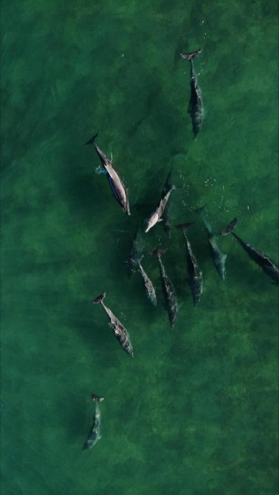 «Sebas» vive frente al mar, y desde su terraza pudo ‘tirar’ el drone muy rápido, al darse cuenta de que empezaba el desfile más lindo. Es que su ojo entrenado captó el movimiento ondulante y las sombras grises que empezaban a distinguirse bajo la serenidad del agua. Y no se equivocó. Porque la filmación mostró la caravana inquieta de los delfincitos desplazándose a toda marcha por ese mar que es nada más y nada menos que su casa.
