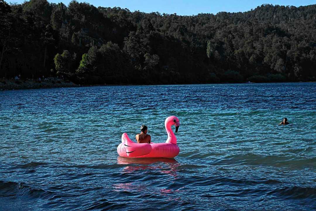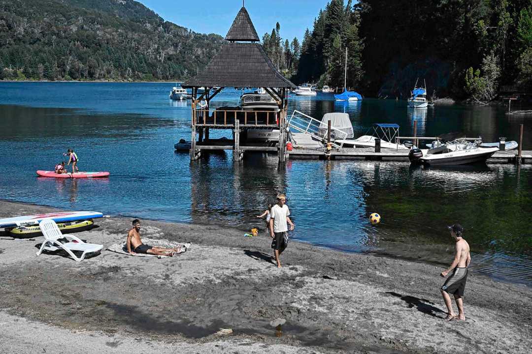 Familias y turistas disfrutan de las playas del Nahuel Huapi.