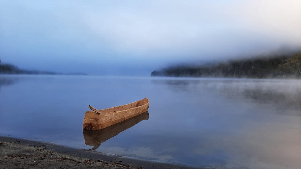 Hace un año un wampo volvió a navegar por las aguas del Lago Correntoso en Villa la Angostura. Integrantes de la comunidad Kintuparay construyeron con un coihue ahuecado una embarcación igual a que la que usaban los mapuches hace cientos de años y en medio de una ceremonia navegó por cinco horas, a remo, hasta el territorio de la comunidad Paichil Antriao. Hoy, ese día vuelve en imágenes, para salir del museo y renacer.