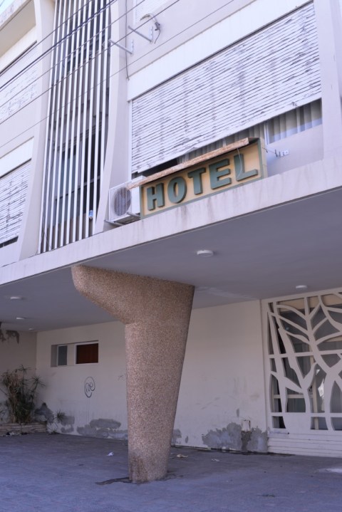Una foto del Hotel que ahora está cubierto para ser refaccionado.