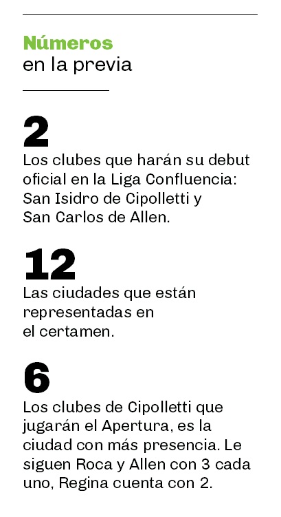 El certamen que iniciará hoy tendrá la particularidad que significará el debut en la Liga para dos nuevas instituciones. San Isidro de Cipolletti y San Carlos de Allen fueron las dos flamantes incorporaciones a la Confluencia el año pasado, pero no lograron debutar por la pandemia de coronavirus.