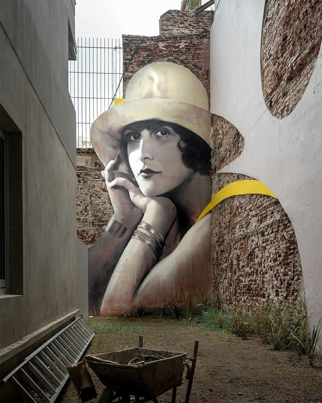 -MR: Cuando me preguntan cómo me defino digo que soy muralista. Pero «muralista» viene de muro y en realidad los muralistas estamos aplicando pintura al muro. No sé si hacemos un ejercicio de entender la pared desde su materialidad y concepto. Solamente hacemos una pintura utilizando el soporte pared. ¿Qué pasa atrás de esa pintura? Empezamos a investigar todo ese material, dejando siempre una ventana abierta a la memoria viva de la pared, o sea, no pintar todo y sí dejar vestigios de su historia.