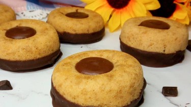 Derretimos el chocolate y bañamos la parte más plana de los donuts, colocamos sobre un papel de horno añadiendo un poquito de chocolate en el centro para tapar el agujero, llevamos a la heladera. Para preparar el relleno, derretimos el chocolate y lo mezclamos con la crema de avellanas. Rellenamos el agujero de los donuts y volvemos a llevar a la heladera unos 15 minutos.