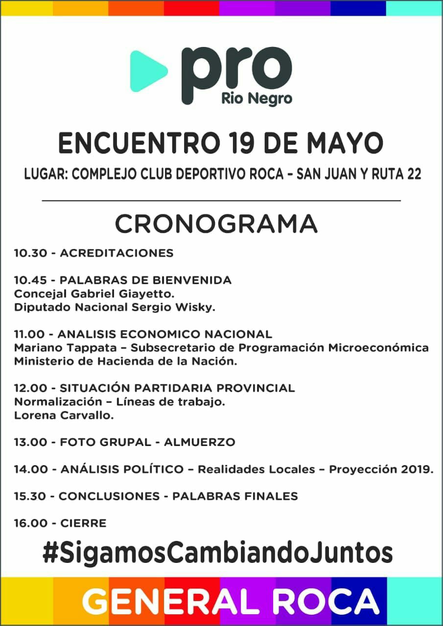 El sector del PRO liderado por el diputado nacional Sergio Wisky se juntó en Roca, centrado en su organización y en la competición por la gobernación en el 2019. Participó, entre los asistentes, el exintendente de Viedma y exlegislador justicialista, Gustavo Costanzo.