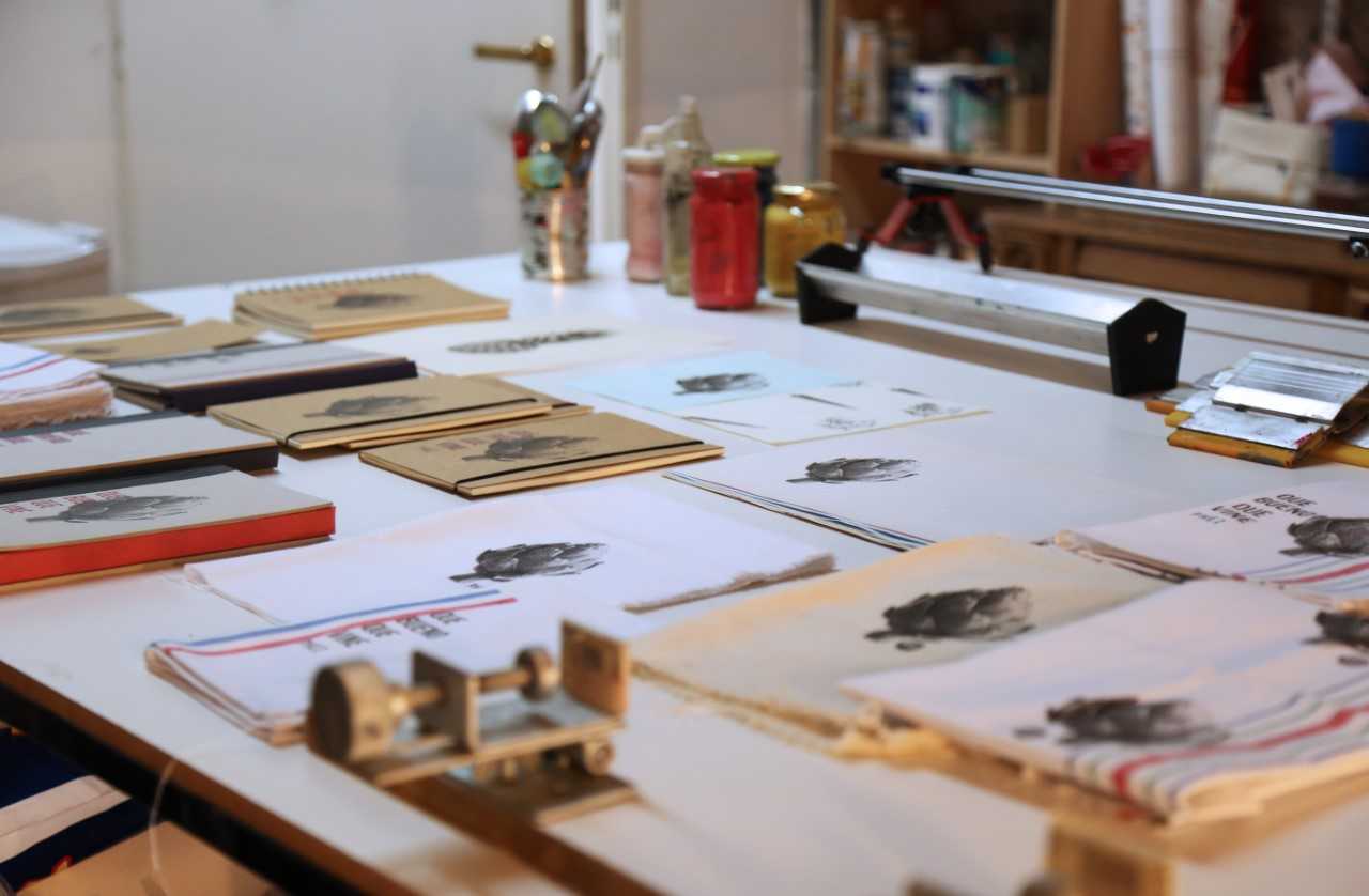 – M: Para lo que es textil, serigrafía. Para los cuadernos, estampamos las tapas en serigrafía también y hacemos nosotras la encuadernación. Para la vajilla elegimos la cerámica.