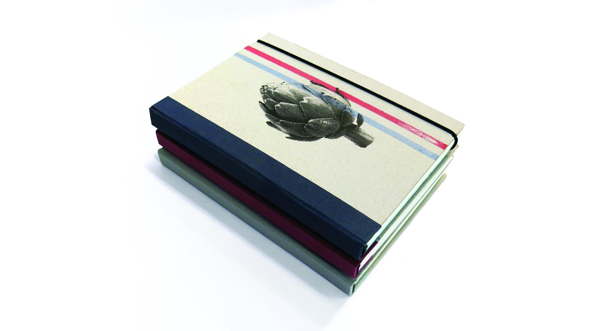 Entre diseños de marcas, logos, muebles, estampados, objetos y dictados de talleres, más las actividades académicas que ambas desarrollan han creado una línea de encuadernación con diseños en serigrafía de alcauciles, zanahorias y ananás ideales para anotar recetas, apuntes, notas de cata, etc. Fuertes, resistentes, innovadores con diferentes diseños interiores y muy livianos de peso. Algunos son cosidos, otros cuadriculados y los hay de diferentes tamaños.