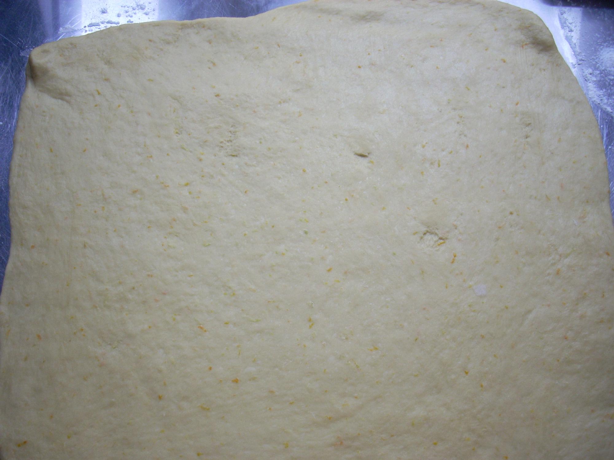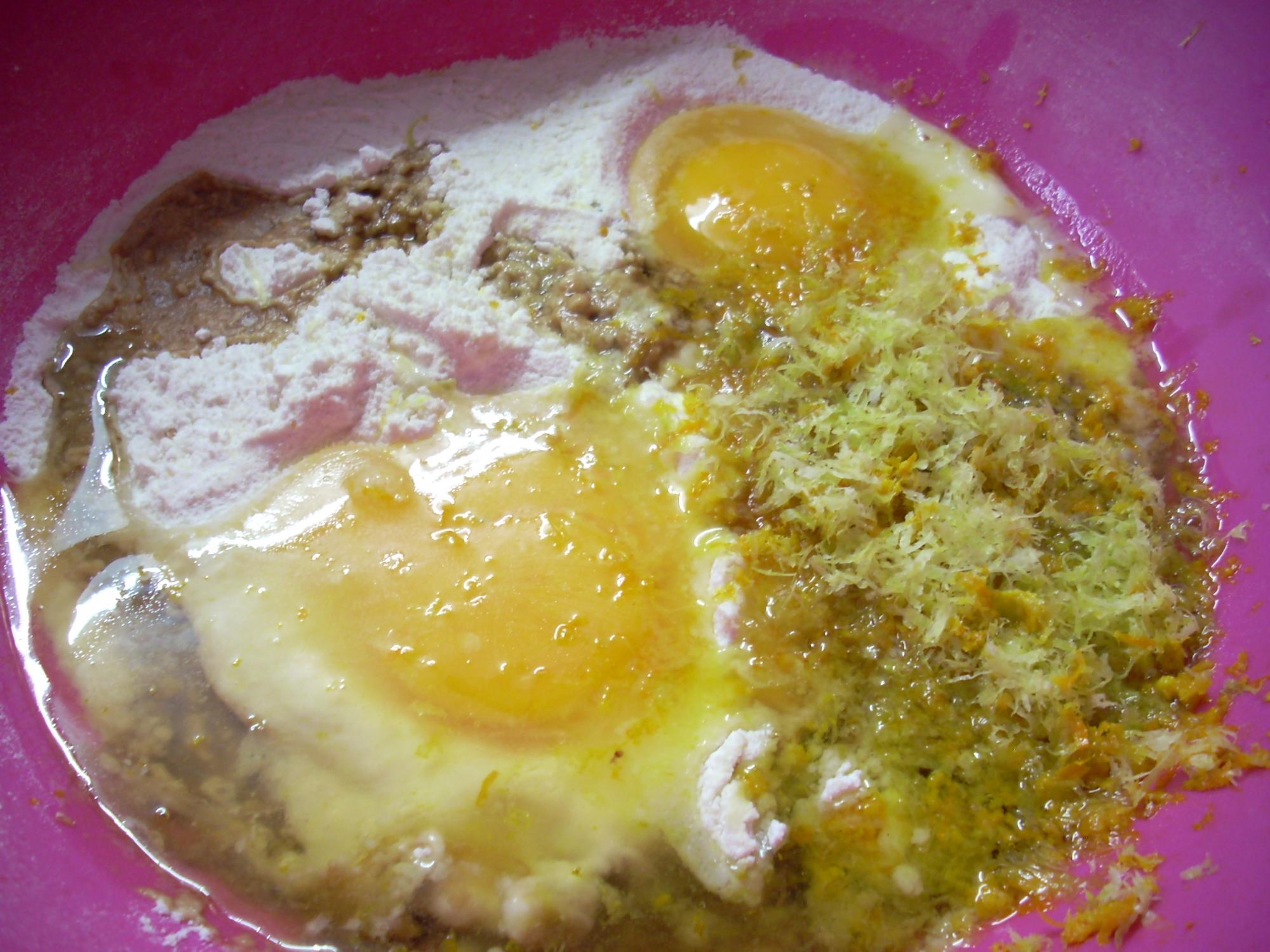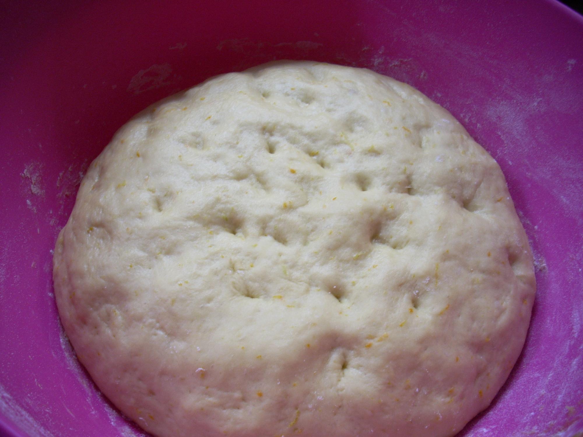 En un bolw hacer una corona con la harina, sal y azúcar. Dentro volcar los huevos, la yema, la miel, las ralladuras, la esencia ,el coñac y mezclar un poco. Agregar el fermento y comenzar a mezclar y de a poco agregar la manteca pomada. Mezclar bien hasta que nos quede una masa lisa, homogénea y suave. No se nos debe pegar a los dedos. En ese caso agregar muy de a poco harina en la mesada y trabajar bien hasta que nos quede una masa homogénea.