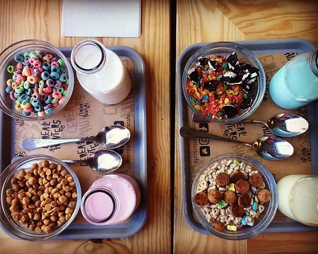 Estos lugares tienen una estética muy de la seria norteamericana “Friends”. Suelen vender hasta 175 variedades de cereales y 25 tipos de leche. Todo se sirven en inmensos tazones. Las leches tienen procedencia vegetal o animal (oveja, vaca, soja, avena, coco, avena, almendras, arroz, entre otras).