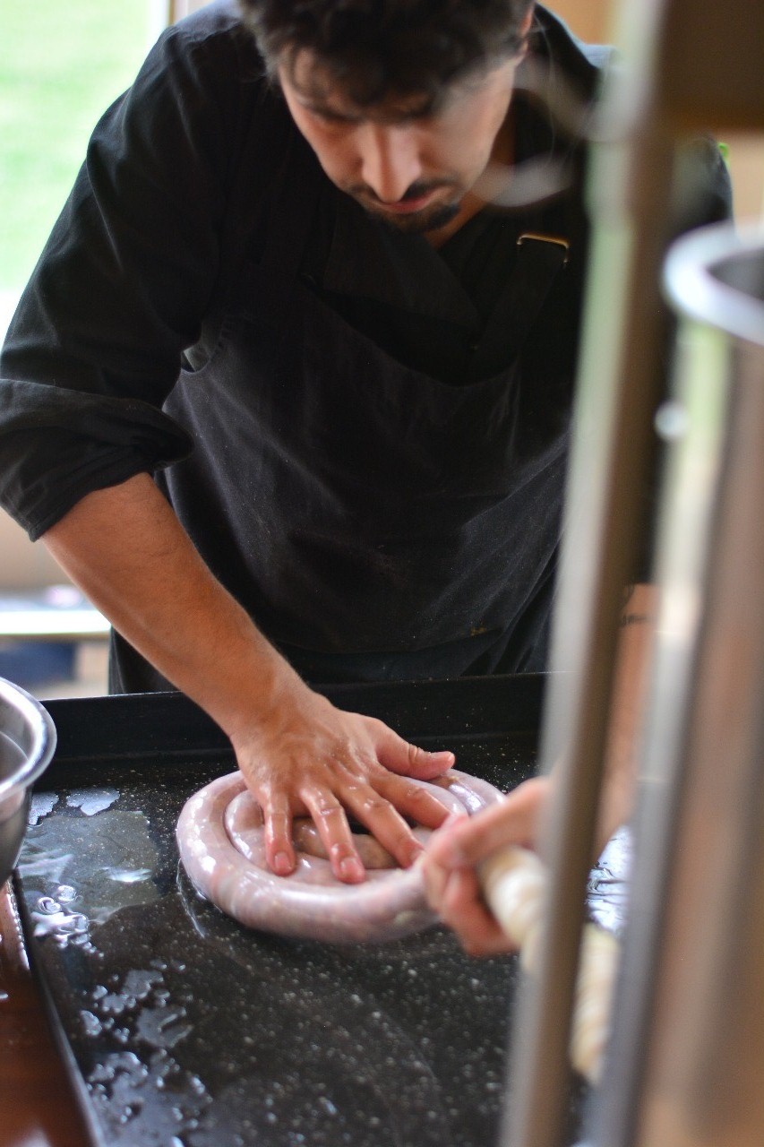 “Sí, nuestra historia nos dice mucho», dice Martín y advierte que más de uno debe recordar las despensitas que tenían nuestros chacareros en sus casas, donde no faltaban estos productos, oréndose y esperando a ser disfrutados. «La elaboración de embutidos secos fue algo en lo que me enfoqué en estos últimos tiempos. Primero fue el interés de conocer cómo lo hacen, cómo es su procesos, por qué y el cómo de muchas preguntas que me surgían como amante de la cocina. Fue así que de a poco comencé a producir y querer mejorar un producto de elaboración artesanal y tan personalizado como lo es un salamín una bondiola, un jamón crudo…”, afirma.