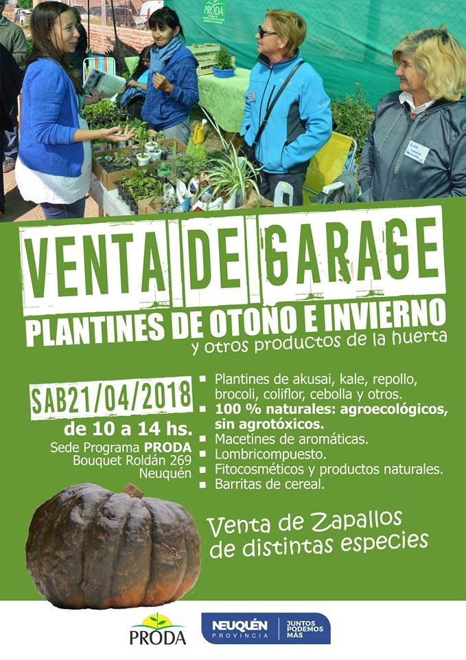 A tal efecto se realizará este sábado 21 de abril a partir de las 10 de la mañana y hasta las 14 horas, una “venta de garage” en la sede del programa PRODA, ubicada en la calle Bouquet Roldán 269, en donde además de los plantines para la huerta, se comercializarán macetines de aromáticas y flores, cactus y crasas, conservas y dulces, lombricompuesto, fitocosméticos, barritas de cereal, hongos comestibles, verduras deshidratados, sopitas deshidratadas y verduras recién cosechadas.